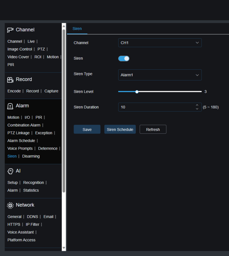 - Deterrence and Siren triggered by selected events with customizable schedules