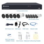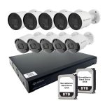The IP camera system bundle includes 5 4K cameras with audio monitoring, a 106° view, 8MP video at 30 fps, configurable deterrents like lights and a siren.