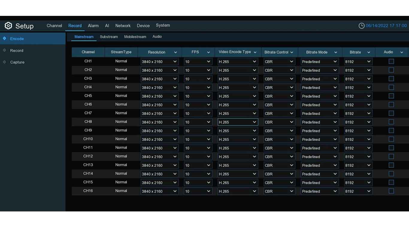 The 16 channel DVR with hard drive allows storage expansion up to 14TB per SATA, keeping more recordings without frequent overwrites.