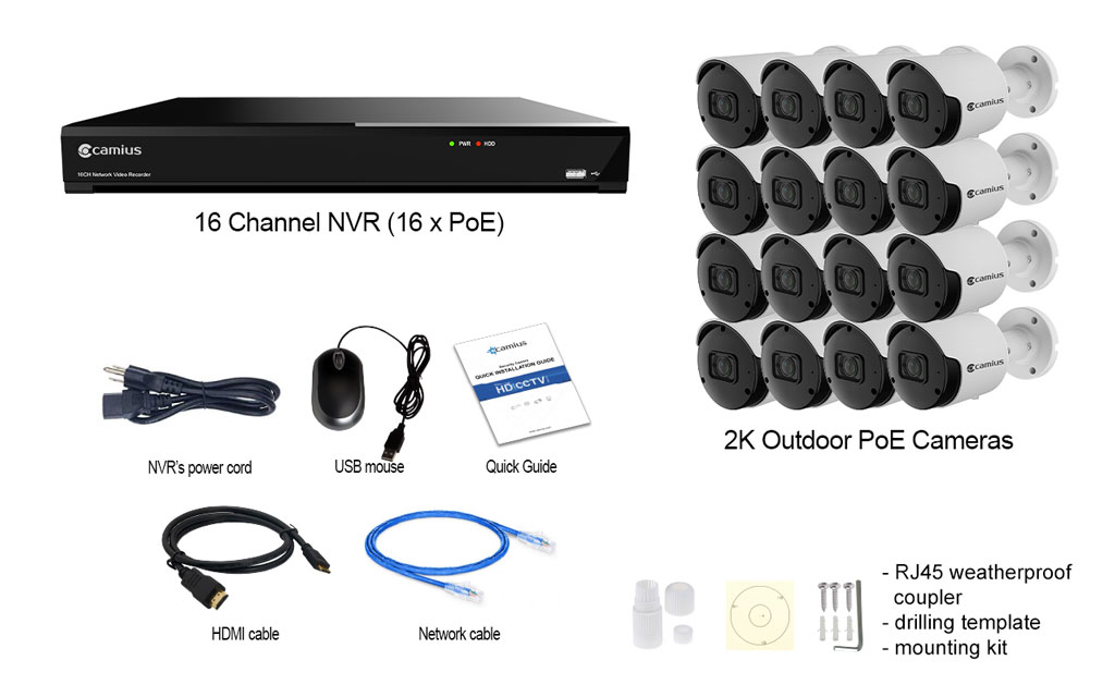 Camius 16 Outdoor Cameras Security NVR system delivers super HD 2K video and audio in addition to motion, sound, human & vehicle detection, perimeter intrusion detection, and more in AI mode with analytics and reports. In addition, the 16 Channel NVR with the highest recording bandwidth will satisfy any business owner’s security requirements. You can add up to 42 terabytes of internal and external storage to this advanced NVR surveillance system for weeks or months of recorded footage.