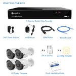Users can record footage 24/7, customize their schedule, and select motion detection triggers. In addition, the 4K camera system supports PIR detection triggered recording when users incorporate 4K spotlight security cameras. More IP cameras are available for purchase here for those interested in expanding their system.