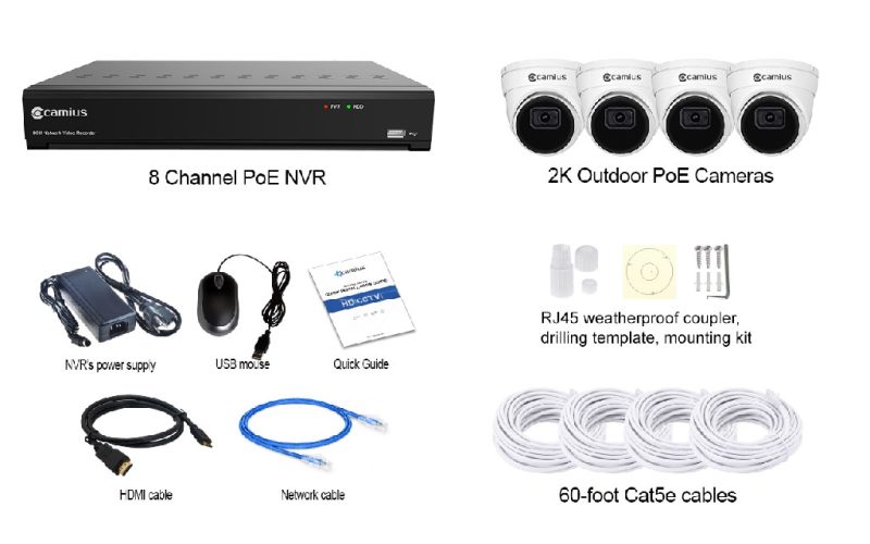 - Network Interface: 8 LAN ports (Power-over-Ethernet) for seamless installation of Camius IP PoE cameras