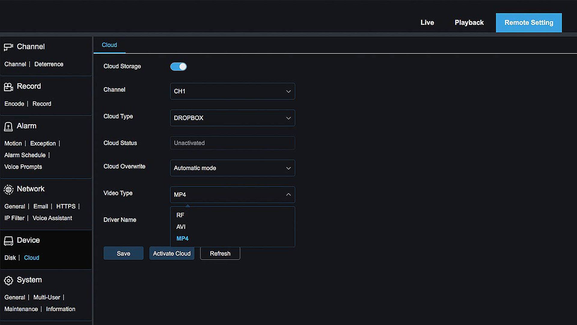 - Video encoding: H,264, H.265 Audio encoding: G.726