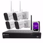The wireless NVR camera system includes 4 cameras with live view and recording. You can expand the security system to 8 battery-operated wireless cameras with audio. The wireless camera system has a preinstalled 4TB HDD storage, which is upgradable to 10 TB. This
