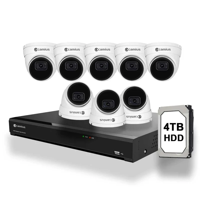 Look no further than this Camius bundle. It includes a Camius 16 channel network video recorder with a 4TB hard drive (IPVAULT2320PR) and 8 Camius 4K PoE dome cameras (IRIS8R). You can add 8 more PoE cameras to this bundle for a complete 16 camera  system.