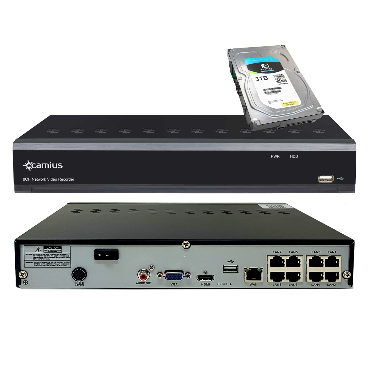 The 8 Channel NVR has a built-in PoE switch that makes the whole setup process easy and quick. The network video recorder assigns a unique IP address to the Camius IP camera. No more complicated IP camera configuration. The NVR security system is expandable to 8 IP channels.