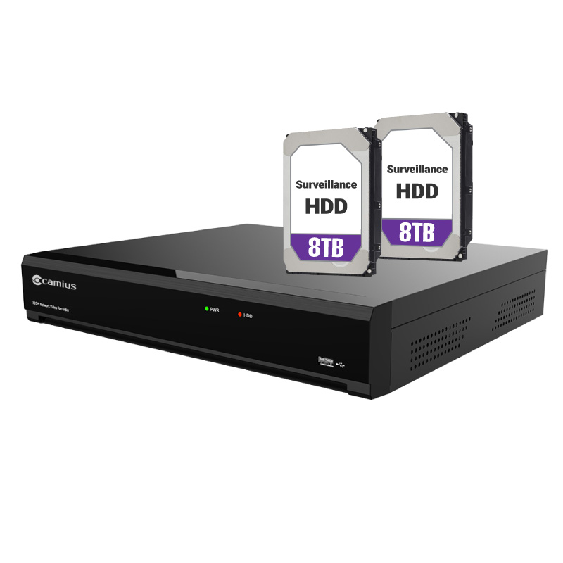 Camius professional NVR accommodates up to four SATA hard drives, each supporting up to 18TB, totaling a potential storage capacity of 72 TB. This ample space ensures prolonged retention of high-resolution footage.