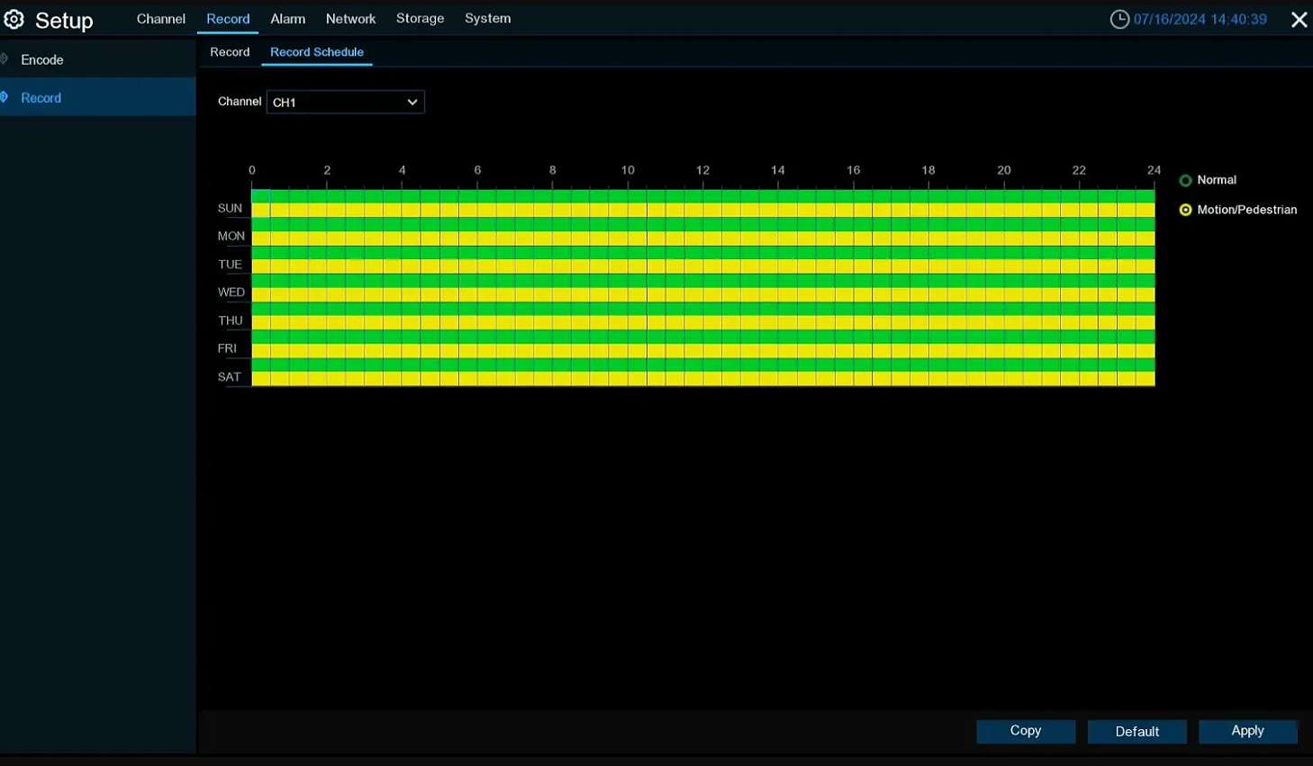 The wireless security camera system records on motion and you can also activate continuous recording.